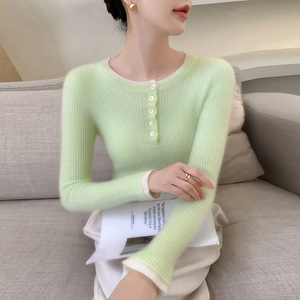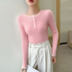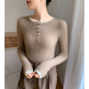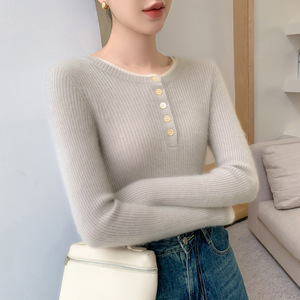 气质百搭~秋冬羊绒衫女圆领修身纯色内搭针织衫紧身毛衣打底上衣