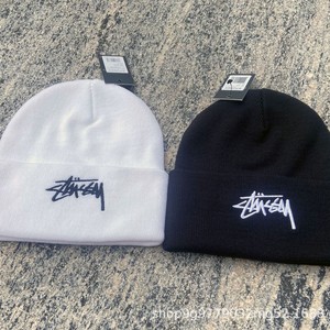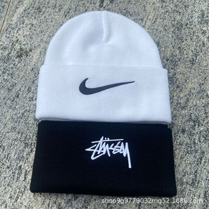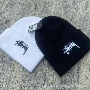 秋冬天刺绣针织毛线帽双面男女街头嘻哈冷帽卷边护耳保暖套头帽潮