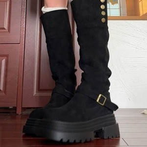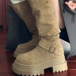 高筒靴2025秋季新款女靴两穿靴子堆堆靴粗跟高跟时装靴复古骑士靴