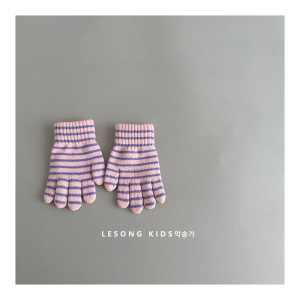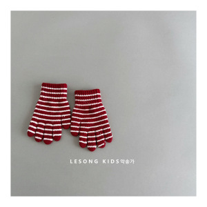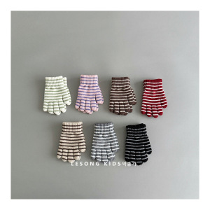 韩版复古条纹秋冬儿童手套冬季户外小学生防寒保暖分指手套潮