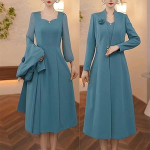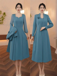 时尚洋气连衣裙套装女2025早秋新款妈妈气质减龄长袖桃心中长裙女