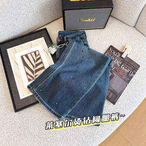 碎星泼墨烫钻!2025秋季新款重工软牛仔裤女设计感显瘦宽松阔腿裤