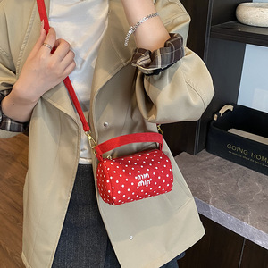 儿童包包日韩简约波点波士顿包小众潮时尚休闲百搭圆筒单肩手提包