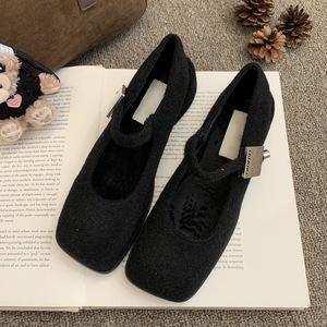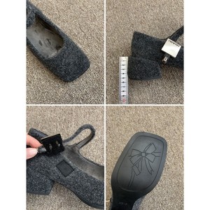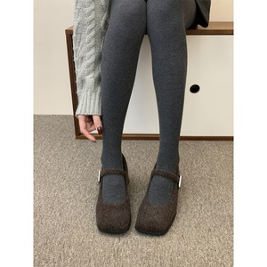 灰色玛丽珍毛毛鞋女冬外穿新款法式复古呢子粗跟单鞋女加绒高跟鞋