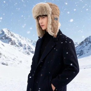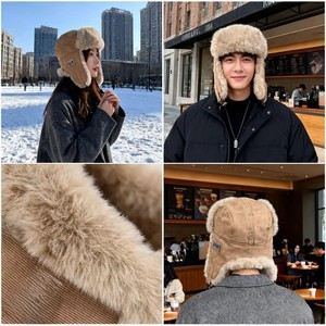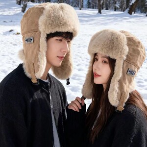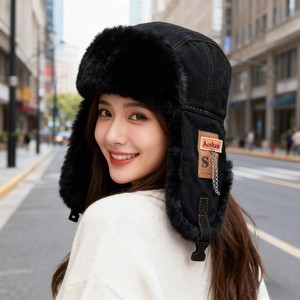 跨境代发冬季加厚雷锋帽男女防风保暖护耳骑车帽毛绒贴布链条棉帽