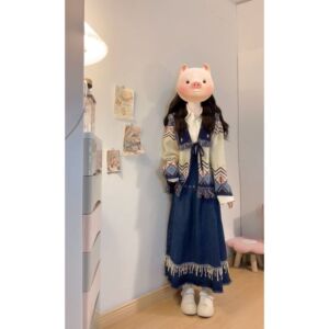 2025秋冬新款慵懒复古费尔岛毛衣外套百搭衬衫牛仔半身裙三件套装