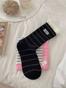 双罗口egg布标袜子女学院风百搭字母堆堆袜ins韩系简约条纹撞色
