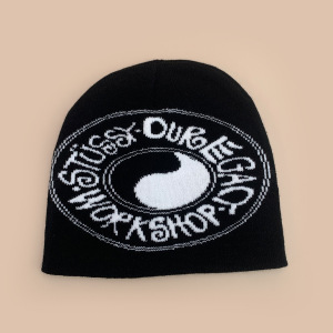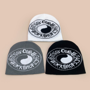 秋冬美式街头八卦图案针织帽男女保暖个性嘻哈冷帽套头帽子批发