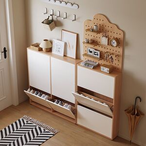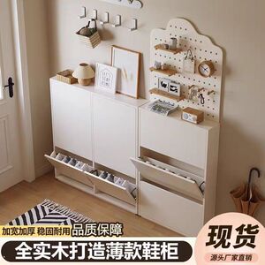 洞洞板鞋柜一体家用门口室内实木靠墙超薄鞋柜新款鞋柜入户收纳柜