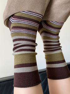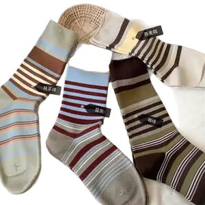 春秋新款撞色条纹堆堆袜女日系学院风约百搭中筒袜简森系复古棉袜
