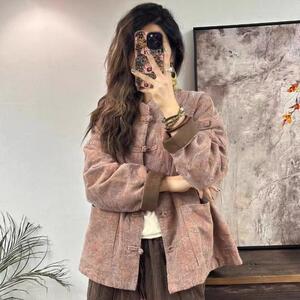 外贸大牌女装中国风复古提花棉服短外套冬季中式盘扣夹棉保暖棉衣