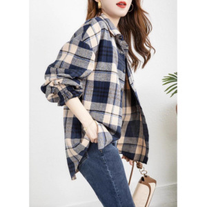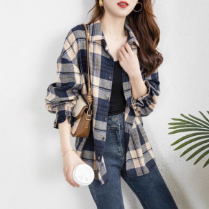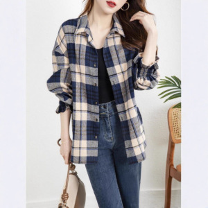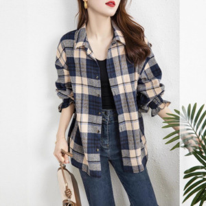 英伦风格子衬衫女款2025新款磨毛长袖上衣复古通勤叠穿外搭衬衣潮