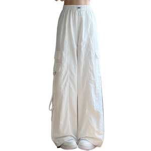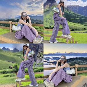 紫色降落伞工装裤女2025新款高腰宽松休闲爬山直筒冰丝速干运动裤