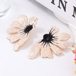 跨境欧美简约时尚合金滴油乳白色花朵叶子耳钉百搭日常通勤女耳饰