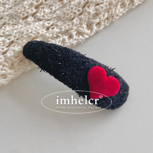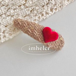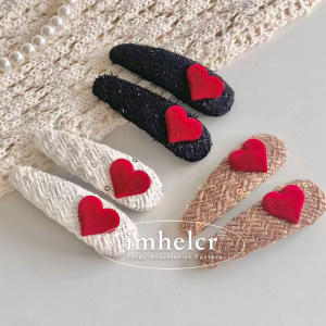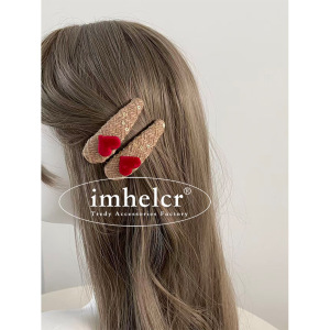 气质小香风红色丝绒爱心编织亮片发夹韩系小众前额侧边刘海BB夹女