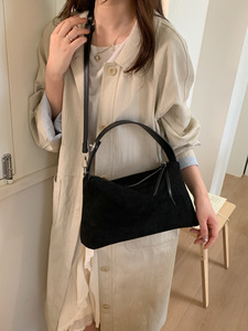 复古麂皮绒单肩包跨境新款休闲通勤时尚包包女高级感百搭斜挎包