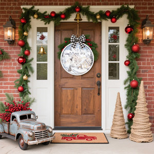 新款圣诞快乐门前标志圆形木牌圣诞主题冬季艺术家居室内户外装饰