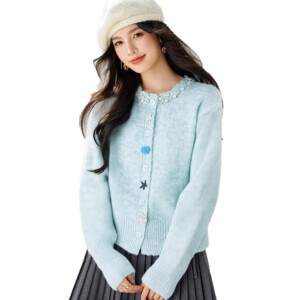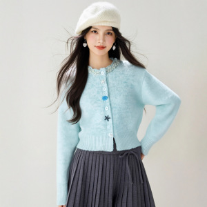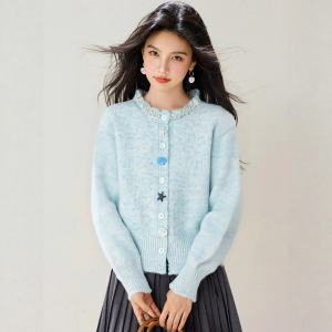 韩版钉珠圆领长袖针织开衫女2025秋季新款显瘦百搭独特别致上衣潮