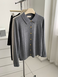 气质通勤小金扣翻领开衫女简约韩版通勤兔毛针织毛衣外套秋冬