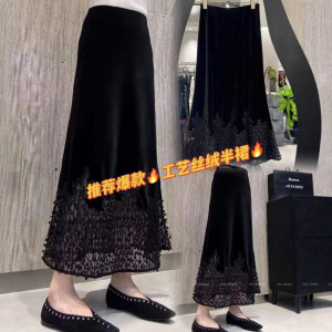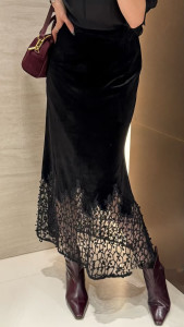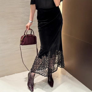 25秋款设计款下摆蕾丝绣花松紧腰半裙下摆镂空鱼尾版型女人味长裙