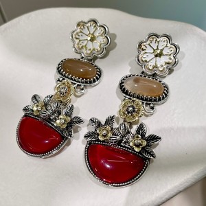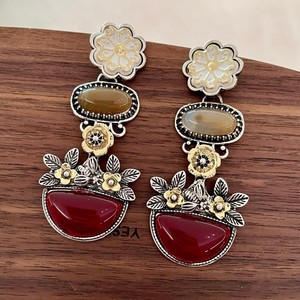 秋冬新品花朵树脂镶嵌耳坠金属系花瓣水晶耳环欧美民族风复古耳饰
