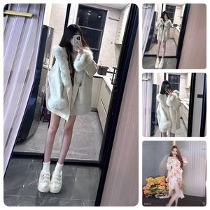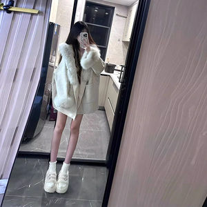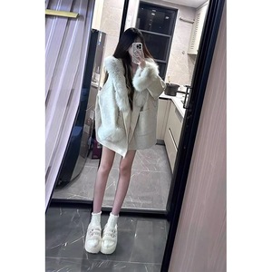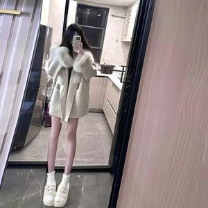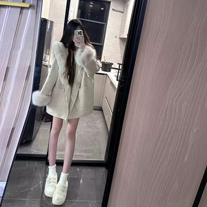 冬季韩系富家千金高级感仿皮草毛领大衣中长款深超好看毛呢外套