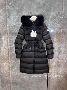 2025新款95白鹅绒蒙家同款女士哑光气质韩版收腰长款连帽毛领羽绒