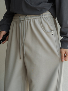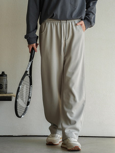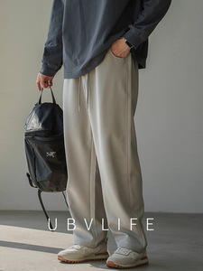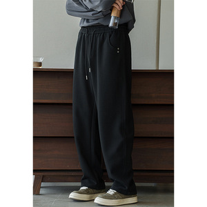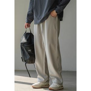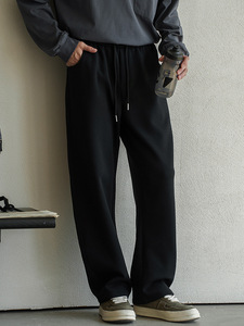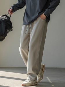 老钱风棉混纺松紧腰格纹弯刀裤男2025秋冬垂感宽松直筒新款休闲裤