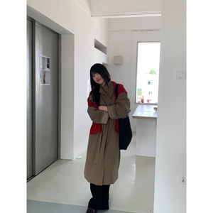 ISO VOGUE-音韩系立领宽松简约绑腰长款风衣外套风衣(配腰绳)1050