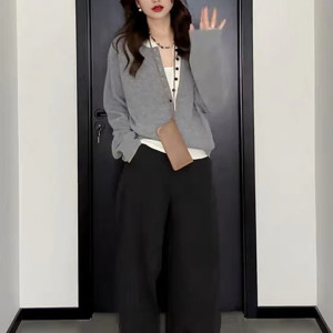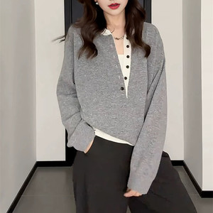 女式圆领100纯羊毛衫撞色半开领设计感秋冬新款ins韩系风软糯毛衣