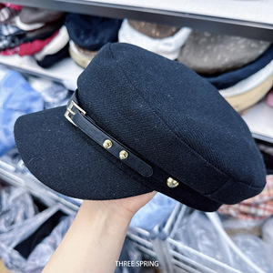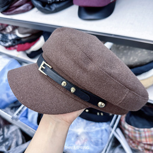 批发韩国2025年早秋新款纯色铆钉皮带扣八角帽大头围显脸小报童帽