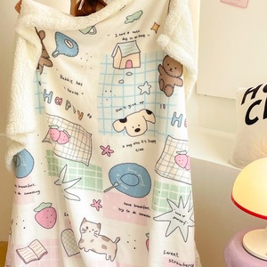 秋冬牛奶绒毛毯加厚羊羔绒盖毯卡通多功能沙发毯办公室午披肩睡毯