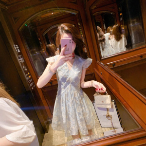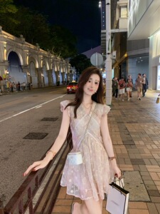 鱼兔子的兔子 收腰气质法式连衣裙女2025秋季穿搭新款v领漂亮裙子