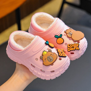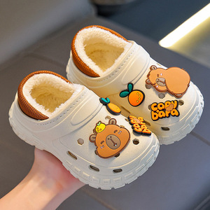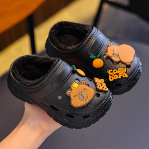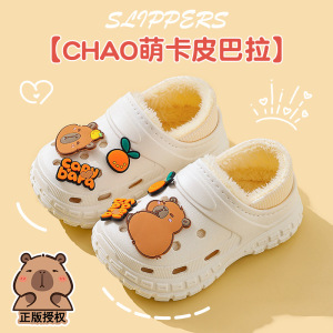 卡皮巴拉2025新款冬季儿童包跟棉鞋男女童保暖加绒亲子中大童棉拖
