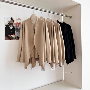 韩系慵懒风短外套针织开衫外套女2025年新款春秋卡其色宽松感