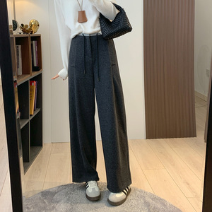 版型巨赞!撞色腰头高腰抽绳捏褶立裁垂顺微弧形直筒阔腿休闲裤冬