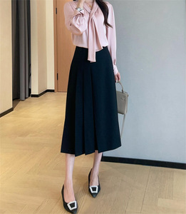 法式气质侧风琴压褶设计宽松显瘦中长款A字半身裙女2025秋G090807