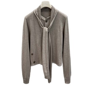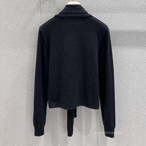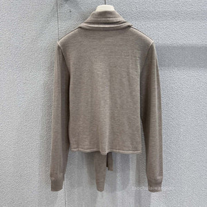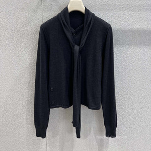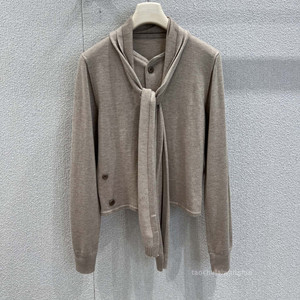 纯色围巾领长袖针织衫 复古老钱风修身百搭单排扣开衫秋 ZW63259