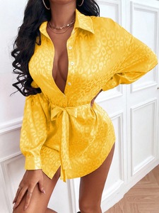 欧美独立站跨境女装 秋季新品缎面衬衫 外贸亚马逊豹纹长款长袖衬