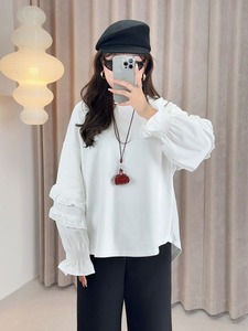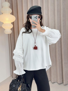 爱元25年早秋新款胖mm大码女装上衣设计感蕾丝拼接T恤W-252