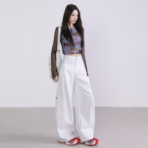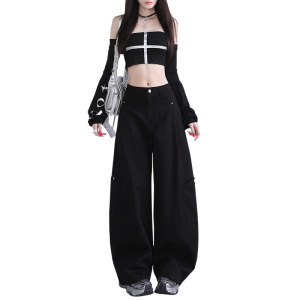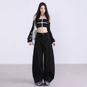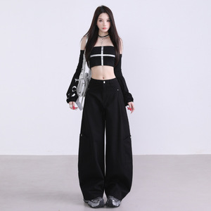 美式黑白色弯刀裤新款镰刀休闲裤女秋季显瘦百搭宽松阔腿裤长裤子
