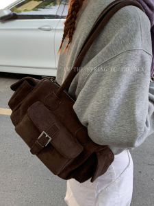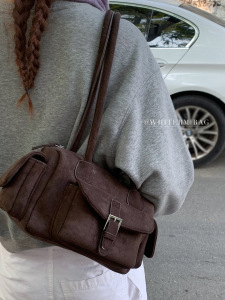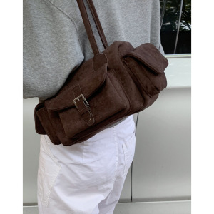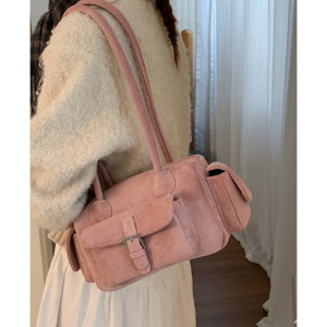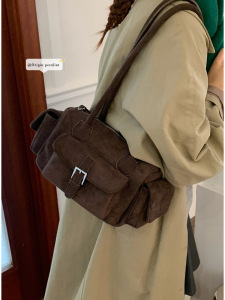 复古高级感腋下包女式通勤包2025新款麂皮绒保龄球包简约单肩包