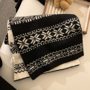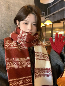 费尔岛风新年红双面针织羊绒围巾女冬季氛围感百搭披肩保暖围脖