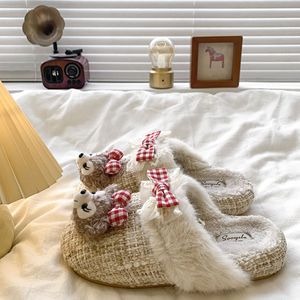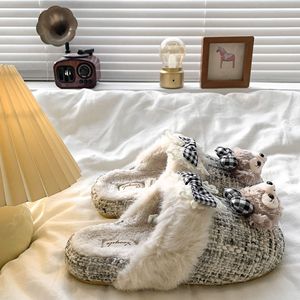 可爱雪莉玫包头半拖鞋女外穿2025秋冬新款加绒棉拖鞋厚底毛毛拖鞋