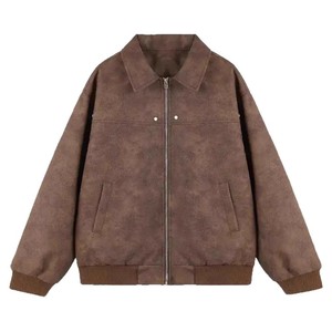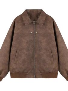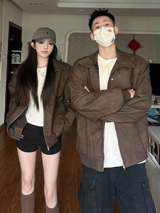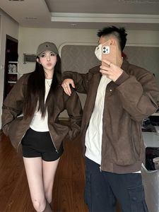 美式复古情侣装棕色棒球服外套2025新款秋冬PU皮宽松高级感开衫女