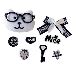 热销黑白系毛绒小熊饰品配件发饰拖鞋diy材料批发pj1833