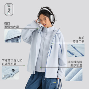 天青色骆托同款汪者铠甲冲锋衣男女三合一户外防风防水登山服外套