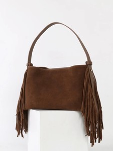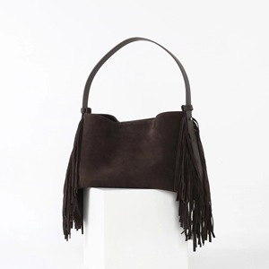 2025新款流苏磨砂真皮斜挎包度假风大容量百搭休闲托特包潮流轻奢