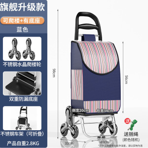 至尊款加厚不锈钢车架+水晶钢轴爬楼轮+加强底座-蓝色条纹