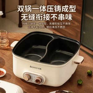 志高方形电煮锅家用6L大容量煎炒煮涮双控温多功能不粘鸳鸯电火锅